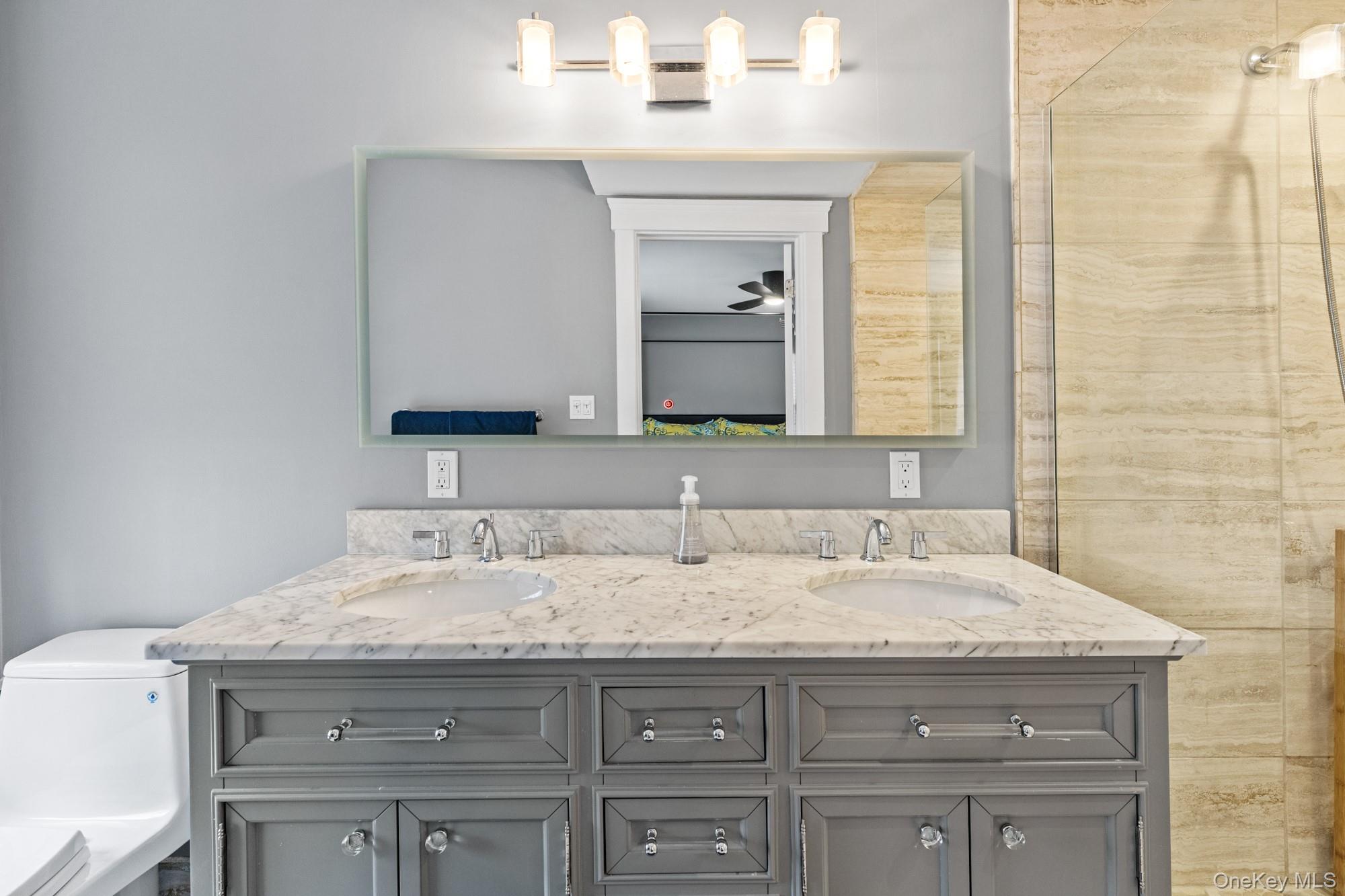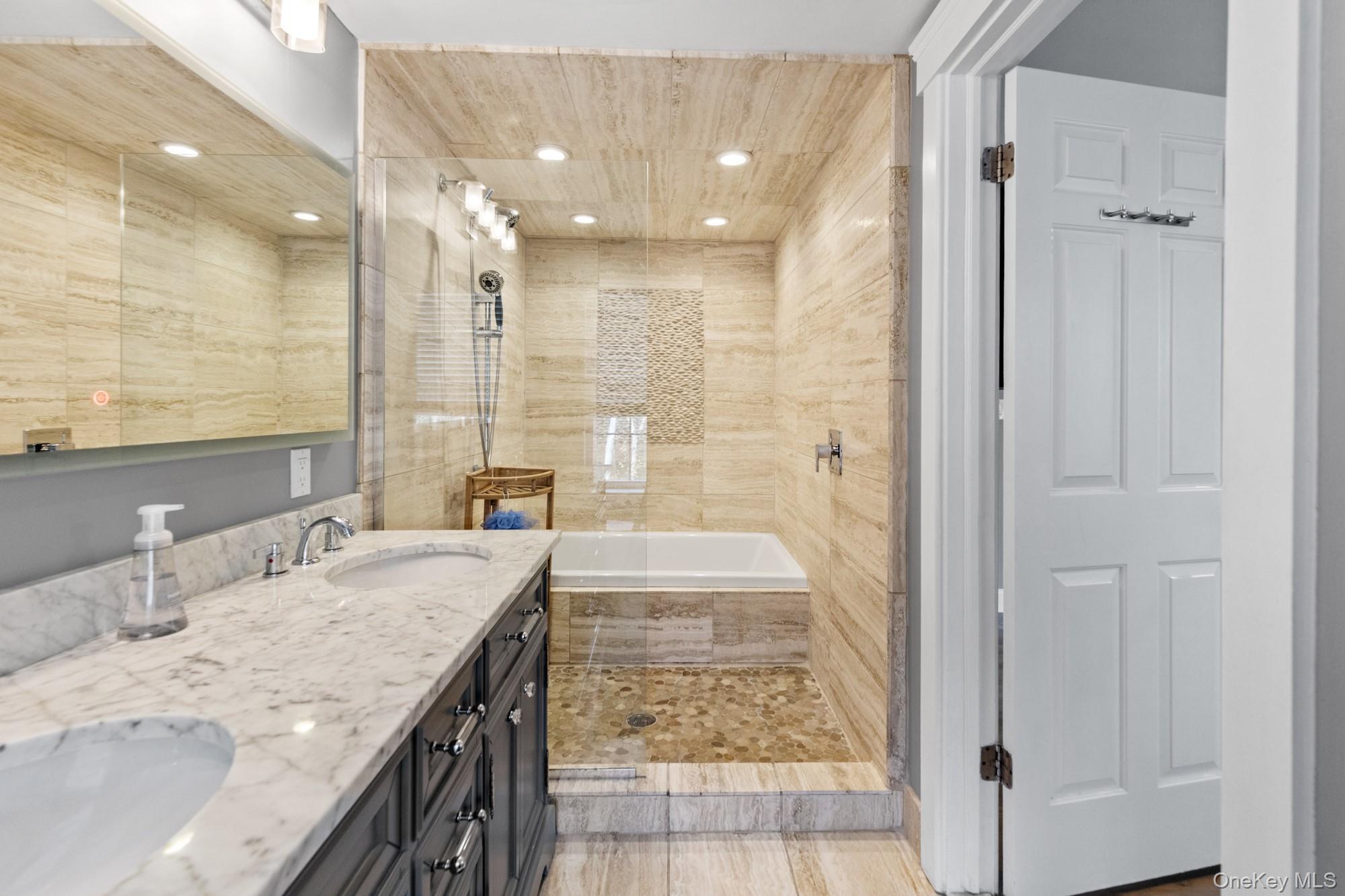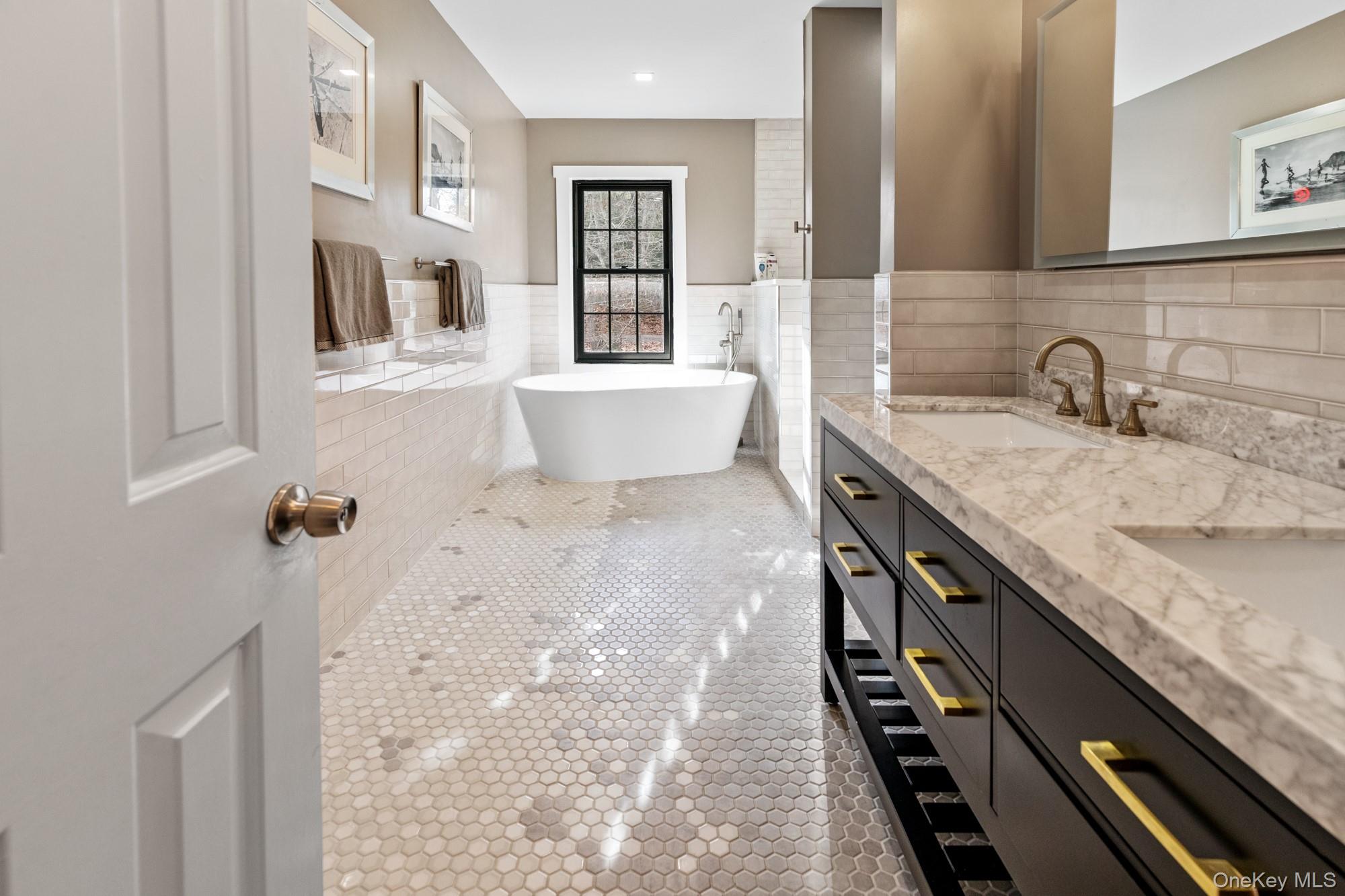 The first floor comprises a primary bedroom featuring a luxurious marble bathroom, alongside an additional bedroom and bathroom. Ascending to the upper level, you will find five spacious bedrooms accompanied by two additional full bathrooms. One of the bathrooms boasts a large soaking tub, while both are fitted with spa-like showers and elegant custom tiles.