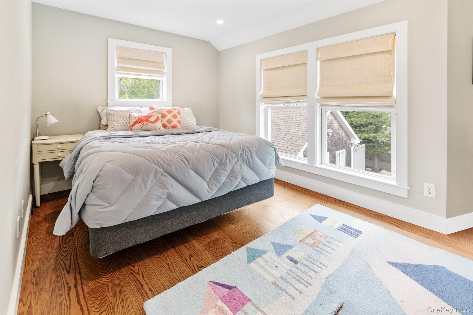 This 4-bedroom, 3.5-bath contemporary Hamptons retreat blends timeless cedar-shingle style with modern comfort. Step inside to sun-filled interiors where an open kitchen with stainless steel appliances flows seamlessly into the dining area and a stone fireplace living room. A screened porch extends the living space outdoors, while a convenient first-floor ensuite bedroom makes hosting easy. Upstairs, the primary suite offers a private balcony with sweeping views of Peconic Bay, generous closet space, and a private ensuite bath with walk-in shower. Two additional bedrooms complete the second level, providing plenty of space for family or guests. The backyard is designed for entertaining and relaxation: a heated gunite pool, expansive bluestone patio, multiple lounging and dining areas, and a pool house with its own bath and outdoor shower. An unfinished walkout basement with high ceilings adds 1,132 square feet of potential, already plumbed for a future bathroom. Adding to its appeal, the property enjoys a serene setting near the vast 75-acre Squiretown Park reserve and is only .2 miles from West Landing Beach. With water views, privacy, and nature close at hand, this home captures the essence of Hamptons coastal living.