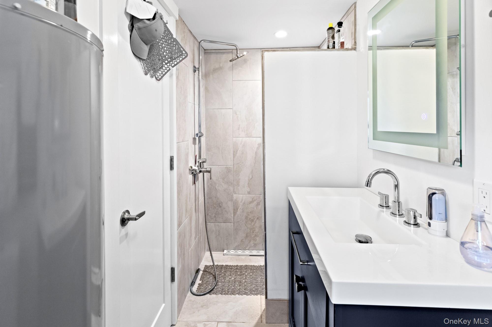 The kitchen features Samsung appliances and a sleek KOBE range hood, with ample counter space and a large island. Central air with a NEST thermostat ensures year-round comfort. The spacious primary suite includes double exposure and a bathroom with a soaking tub, separate shower, and double-sink vanity. Each of the additional bedrooms enjoys abundant natural light.