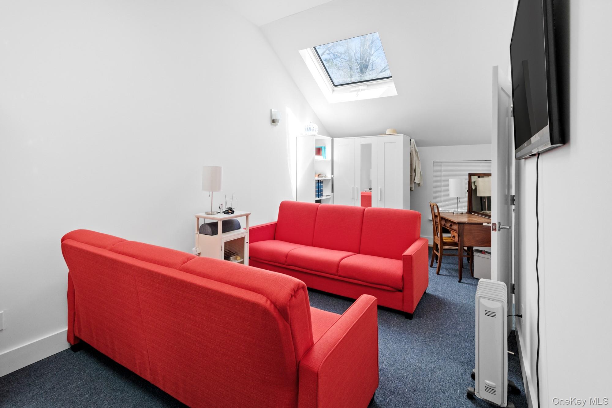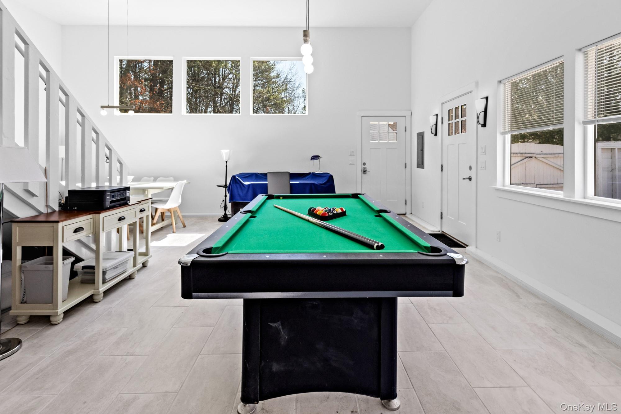A legal two-story accessory structure offers incredible flexibility, with two and a half baths, a recreational space on the first floor, a sitting room on the second, and attic storage. It can be used as a pool house, home office, or creative studio.